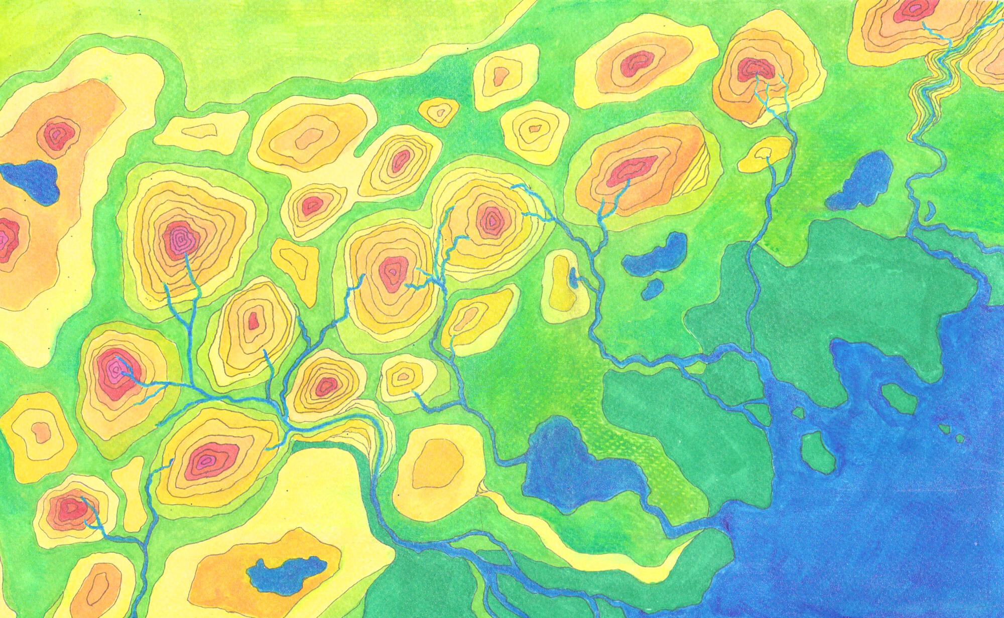 We will discuss some physical geography concepts, and look at how different types of map can convey specific information. Sometimes a map is about showing you where to go, but other times it can be a record of altitude, forest density, underground water, and much more. We will imagine new landscapes and make maps to illustrate different worlds.